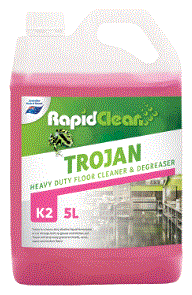 Trojan is a heavy duty alkaline liquid floor cleaner formulated to cut through built-up grease and kitchen soil.