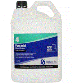 Versadet is a highly concentrated cleaner specifically designed for cleaning of polished floors and may be used for cleaning of any hard surface that is not adversely affected by water.