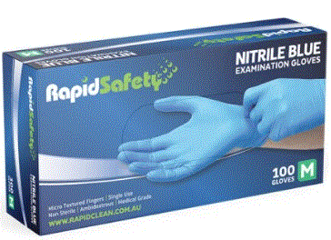 RapidSafety Nitrile Blue Powder Free Examination Gloves are medical grade and food grade. Made from a soft formulation to offer a comfortable feel and fit. High strength with high resistance to tears and punctures.