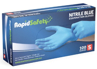RapidSafety Nitrile Blue Powder Free Examination Gloves are medical grade and food grade. Made from a soft formulation to offer a comfortable feel and fit. High strength with high resistance to tears and punctures.