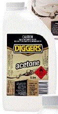 DIGGERSâ„¢ Acetone is an effective clean-up solvent for difficult resins, waxes and adhesives.