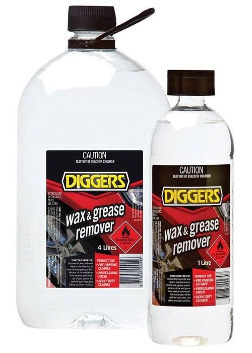 DIGGERSÂâ„¢ Wax & Grease Remover is a highly effective surface preparation treatment which removes wax, grease, polish, oil, tar, grime, glue, and most other contaminants.Effectively removes wax, gum/sticker residual from windows, carpet and furniture.