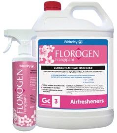 Florogen Frangipani is a specially formulated, alcohol-based, surface and space deodorant. Florogen Frangipani removes unwanted odours and has a pleasant fragrance and kills 99.9% of bacteria.